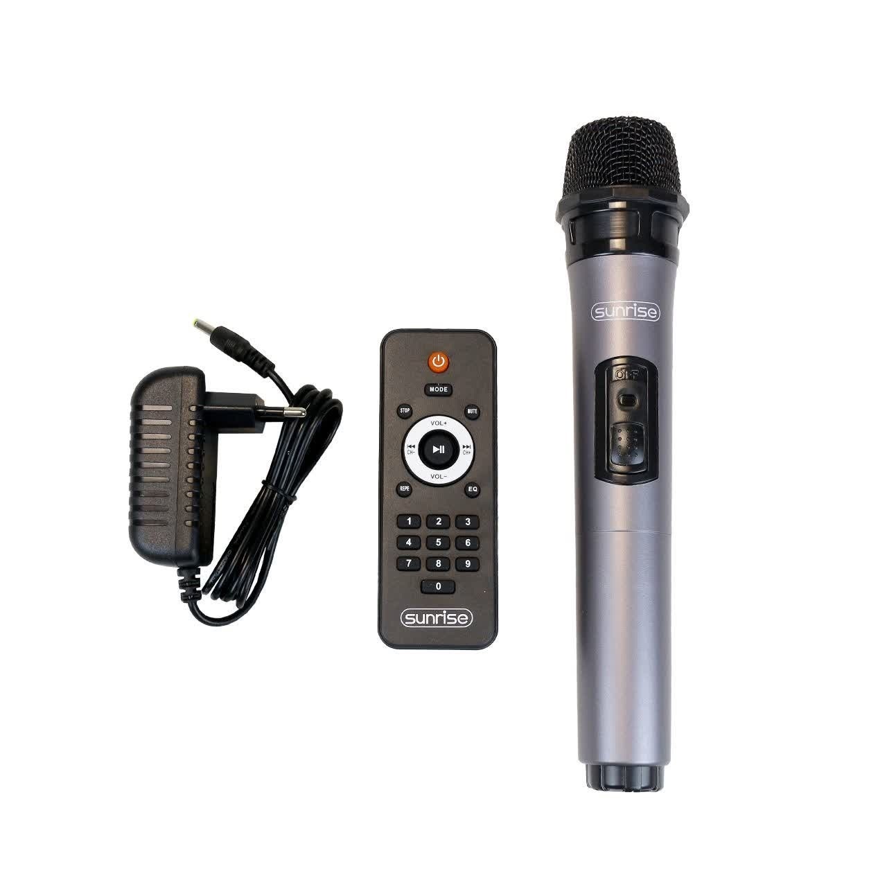 اسپیکر بلوتوثی Sunrise BOX-150 یک اسپیکر همهکاره و کاربردی است که همراه با میکروفن، ریموت کنترل و پایه LEDدار قابل تنظیم عرضه میشود.