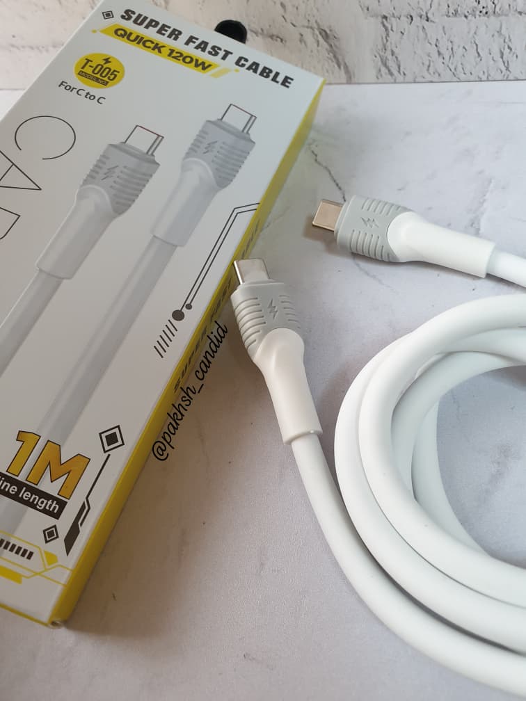 کابل دوسر تایپ C مدل T-005 | کابل Type-C به Type-C سوپر فست شارژ 120W از فروشگاه جانبی21